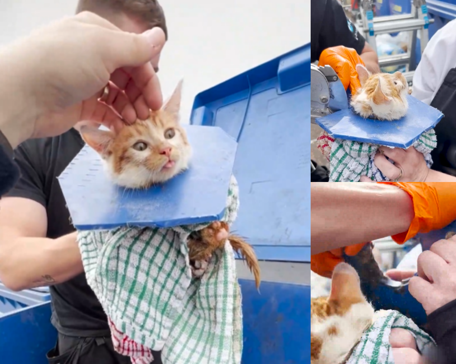 Carefully, gently, the kitten was lifted out of the nightmare it had been trapped in. Its cries softened, replaced by a fragile sense of safety. Wrapped in warmth for the first time in what felt like forever, the kitten finally stopped shaking. 🫶🐱