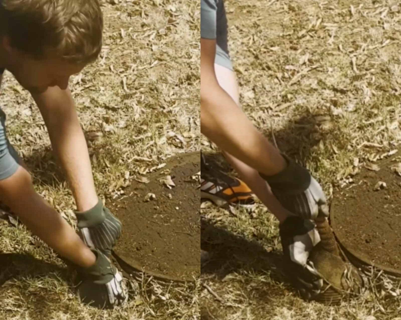 Peering into the hole, they spotted the tiny creature struggling below. Without hesitation, they reached out—carefully, gently—determined not to cause harm. 🤲