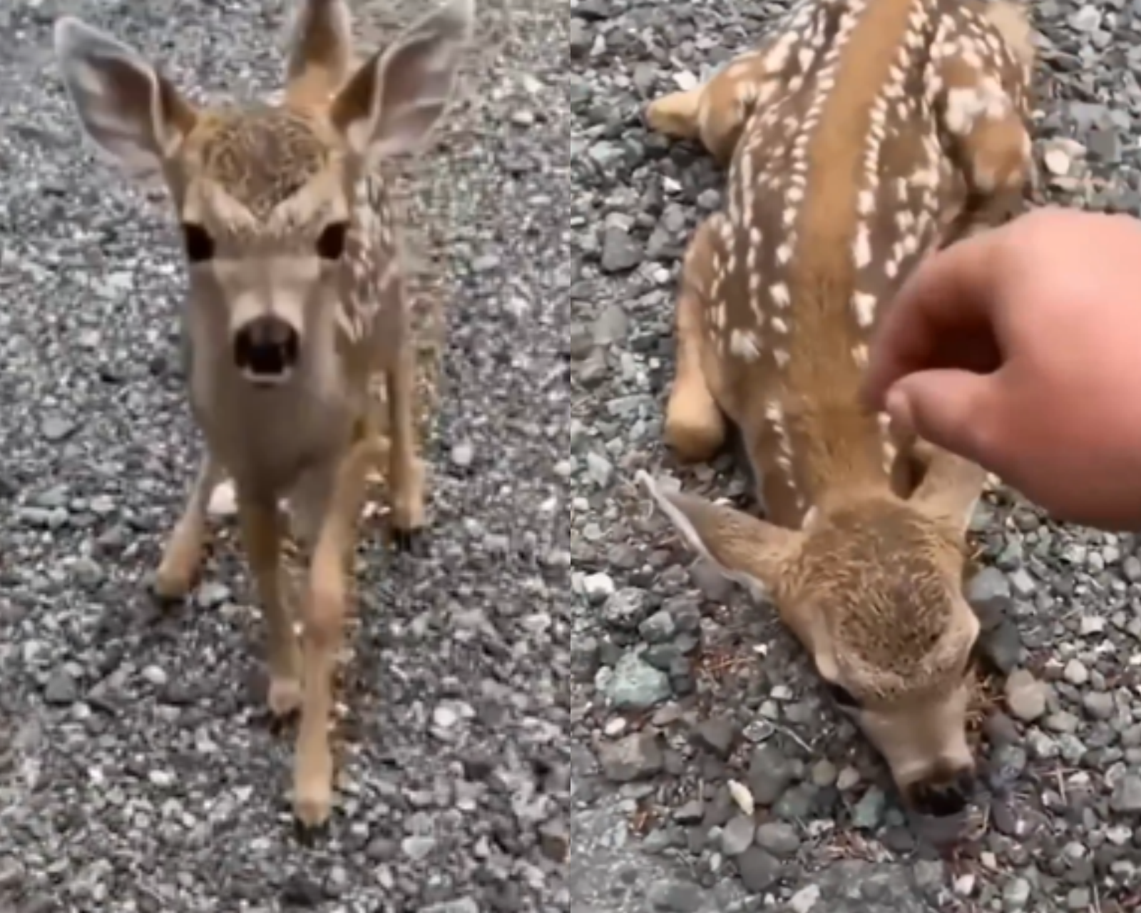 ✨ Then came the moment that melted hearts — the little deer leaned in again, more playfully this time, almost like a child seeking affection. Its small movements were clumsy yet full of curiosity, innocence, and trust.
