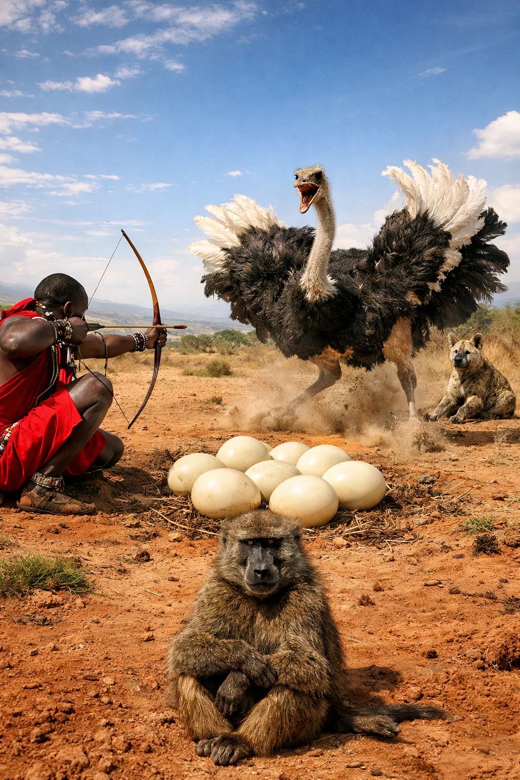In the vast silence of the desert, danger often comes from above. A family of tiny Fennec Fox kits stands close together in the sand as the shadow of a circling Desert Eagle glides across the dunes. The eagle, a powerful sky predator with razor-sharp talons and incredible eyesight, scans the ground for an easy meal. But the fox family is far from helpless. With their enormous ears twitching at the faintest sound and lightning-fast reflexes, the fennec foxes rely on teamwork and instinct to survive in one of the harshest environments on Earth.