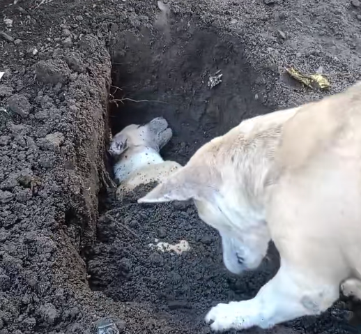 A Mother’s Love in Silence: A Dog Burying Her Puppy