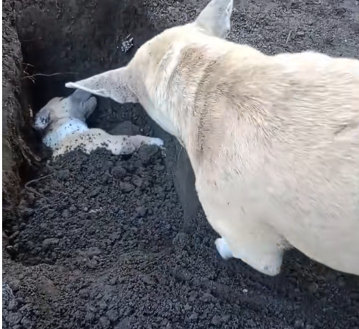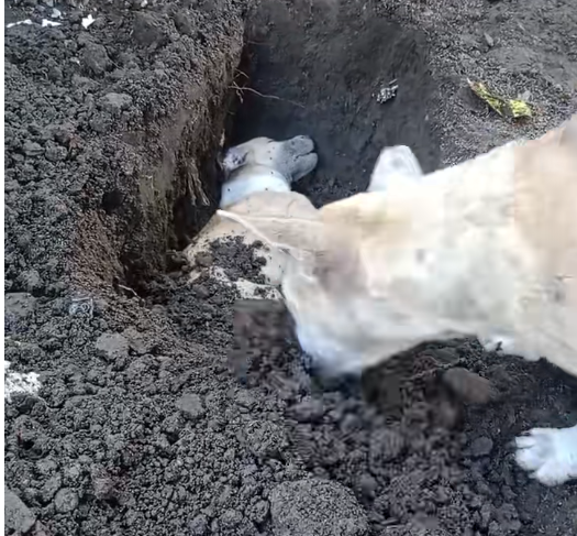 In a quiet and emotional moment, a mother dog demonstrated the depth of her maternal instincts in a way few have witnessed. After losing one of her puppies, she carefully dug a small hole in the ground, placing her tiny lost pup inside. With gentle nudges and careful attention, she covered the puppy with earth, as if performing a solemn farewell.