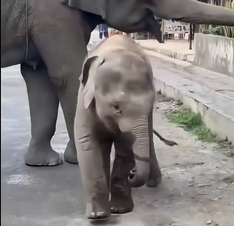 Witnessing the moment, the mother elephant responded with gestures that were unmistakably appreciative. With her trunk, she gently touched the helper, her eyes soft and attentive, as if silently saying, “Thank you for helping my child.” The bond between the mother and her baby was evident, and her actions highlighted the intelligence and emotional depth of these magnificent creatures.