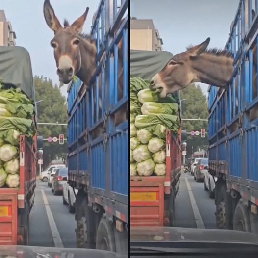 People nearby started laughing and recording the moment, amused by the donkey’s bold behavior. Yet when the animal noticed the attention, it didn’t react the way anyone expected. It didn’t shy away or stop. Instead, it simply looked back at the crowd, chewing even more slowly, as if completely unfazed by being caught in the act.
