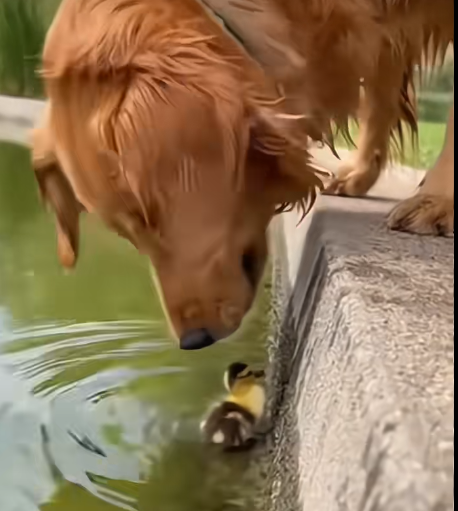 Without hesitation, the dog waded into the water and gently guided the floundering duck to safety, acting almost like a certified lifeguard.