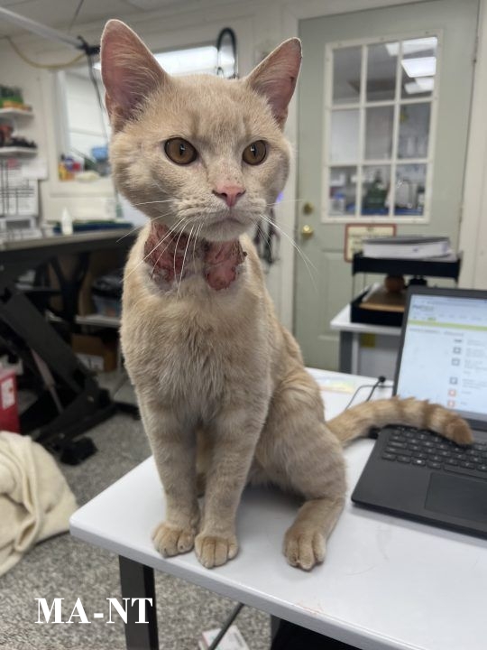 In the heart of a bustling veterinary clinic, a cream-colored cat named Whiskers sits poised on a white table, her golden eyes gazing intently at the camera. Surrounded by laptops, medical equipment, and a soft blanket, she embodies resilience amid adversity. But it’s the raw, reddish scar encircling her neck—like a twisted, unintended collar—that tells the real story. This poignant image, captured during her recovery, has captured the attention of animal lovers across the US, highlighting the often-hidden struggles of stray and neglected pets.