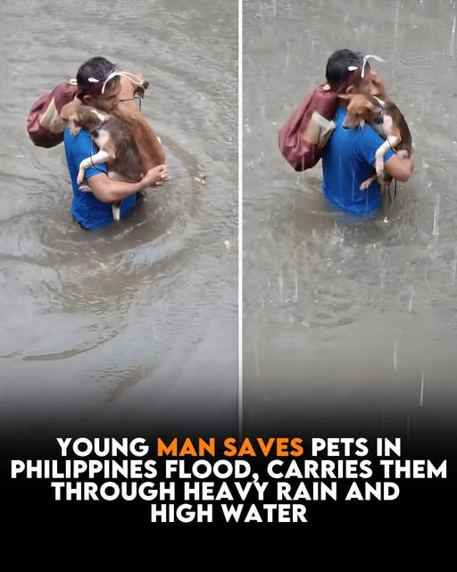In the Philippines, relentless rain turned quiet streets into rushing rivers. The water rose quickly, muddy and powerful, making every step uncertain and dangerous. People hurried to gather their belongings, trying to save whatever they could before it was too late. But for one young man, material things were never the priority.