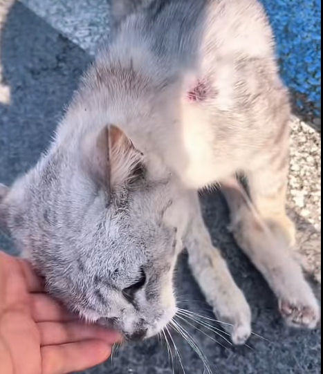 The cat couldn’t stand, couldn’t run, couldn’t escape. It wasn’t just injured—it was completely vulnerable. Every movement must have been painful, every second filled with fear and confusion. And yet, what hurt even more than the injury itself… was the likely reason it was there.