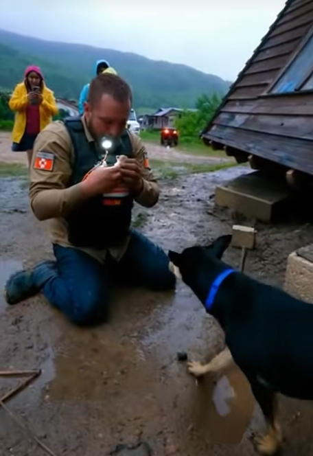Through the chaos of the floodwaters, the mission was clear: get her and her puppies to safety. Moments like these remind us of the power of empathy, heroism, and the extraordinary lengths humans will go to protect the lives of animals who cannot speak for themselves.