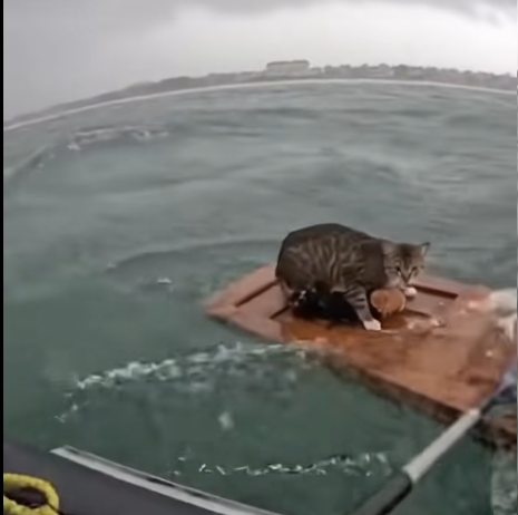 Every moment was perilous. The current was strong, and the debris made the scene unpredictable. Yet her determination was unwavering. She paddled with all her strength, trying desperately to survive while protecting her tiny family.