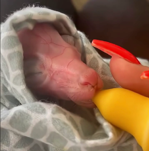 In the first image, a tiny, abandoned baby kangaroo is gently fed from a bottle by its rescuer. The baby kangaroo, barely more than a newborn, appears fragile and weak, wrapped in a cloth for warmth and security. It had been left alone, likely separated from its mother, vulnerable in a world that was too harsh for such a small creature. Without intervention, its chances of survival would have been slim. However, thanks to the quick actions of a compassionate person, this little kangaroo has a second chance at life.