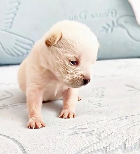 However, in the second image, the story takes a dramatic and heartwarming turn. The puppy, once abandoned and on the brink of death, is now being carefully cared for in a safe and loving environment. It’s a new beginning for the little one, as it now sits on soft bedding, its tiny paws beginning to find stability. The once fragile creature is being fed, nurtured, and shown kindness—everything it needed to thrive after its traumatic start.