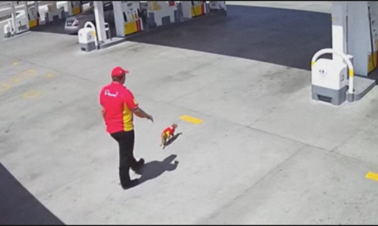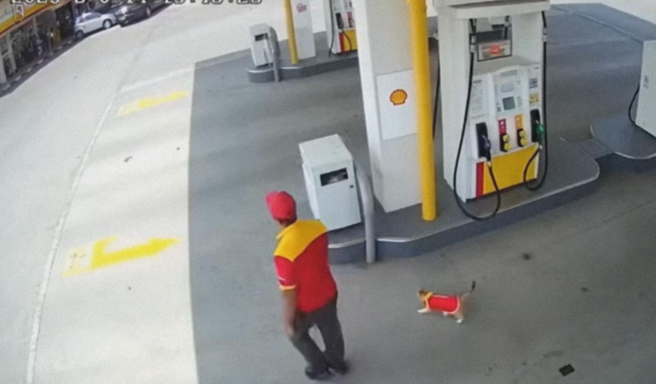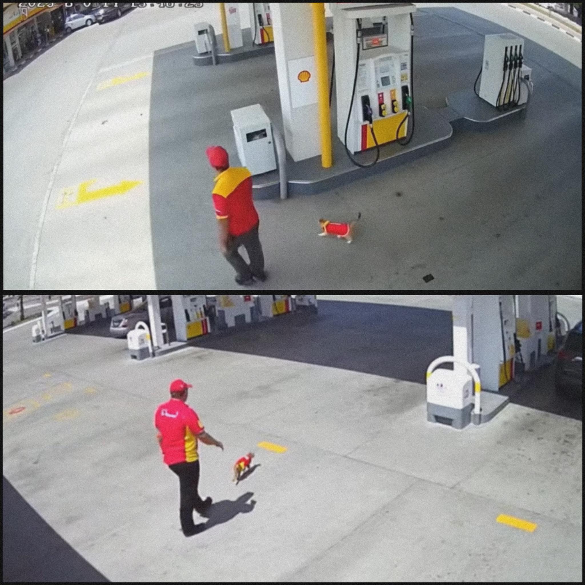 The staff even created a tiny shirt for him with the company logo, making him the gas station’s very first unofficial mascot. Now he follows the workers around during shifts, happily greeting customers, and adding a touch of joy and companionship to every day at the station.