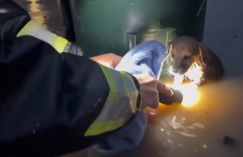 Gently, carefully, the rescuer reached out. No sudden movements, no loud आवाज—just patience. After a few tense seconds, the puppy allowed itself to be picked up. In that moment, something shifted. The fear didn’t disappear instantly, but it softened.