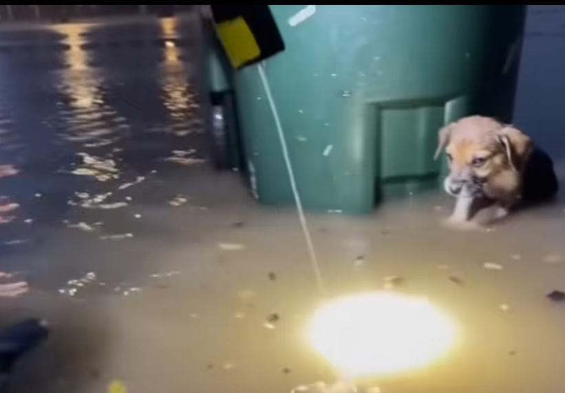 A tiny puppy, drenched from head to toe, curled itself tightly against the cold ground. Its fur clung to its body, offering no warmth, no protection. Every passing moment made it weaker. Its eyes, wide and fearful, scanned the surroundings—not with hope, but with uncertainty. It didn’t bark. It didn’t move much. It simply waited.