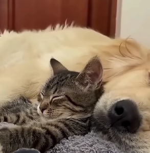 In the second image, we see the kitten peacefully napping beside a dog, showcasing the beautiful bond between animals from different species. 🐶🐱 The sight of them resting together illustrates how love transcends boundaries. The kitten’s adoption not only brought it comfort, but it also created harmony within the entire family. This is a reminder that fostering love and care in our homes not only enriches the lives of animals but also strengthens the connections between all family members.