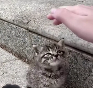 The moment captured in this image is nothing short of heartwarming. The little kitten looks up with a hopeful expression as it gazes at the hand reaching out to it. 🐾 With its soft, striped fur and innocent eyes, the kitten embodies pure innocence and vulnerability. It’s easy to imagine the hardships this little one must have faced before finding its forever home. Now, with love and care, it has discovered safety and warmth, two things it had been longing for.