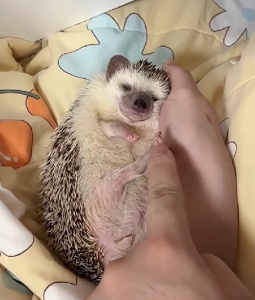 The process of adopting or rescuing a hedgehog is not an easy one. 🏡 It requires patience, dedication, and understanding of the animal’s unique needs. Hedgehogs are nocturnal creatures and can be a bit shy and fearful, but once they are introduced to a secure environment filled with love, their true personalities begin to shine through. In the second image, we see the hedgehog lying peacefully on its back, surrounded by soft bedding, comfortably relaxed in a loving home. 🛏 This transformation is a testament to the healing power of care, as this tiny creature has gone from being in distress to enjoying moments of pure joy and comfort.