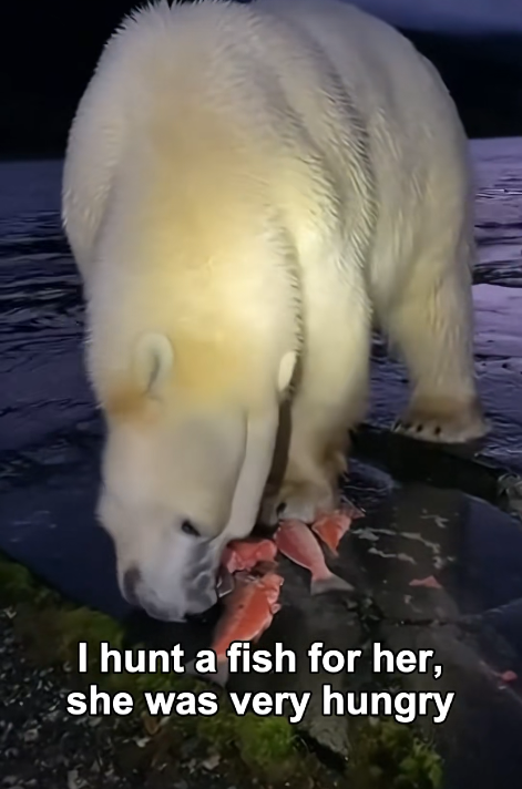 Carefully maneuvering through the slippery ice sheets, they guided the struggling bear to solid ground. Covered in frost and shivering, she was weak but alive. The rescuers made sure she was safe, giving her time to recover and regain strength.