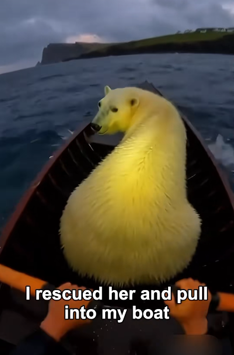 In the frozen Arctic, a desperate cry echoed across the icy waters. A polar bear, exhausted and struggling to stay afloat, had fallen through thin ice. Her powerful body fought against the freezing currents, but she was clearly in danger of drowning.