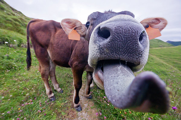 Cows also have very expressive faces. Their large eyes, big noses, and moving ears allow them to show many different reactions. Sometimes a cow may stick out its tongue, chew slowly while staring at something, or tilt its head in a confused way. These facial expressions can make cows look surprisingly humorous and almost human-like.