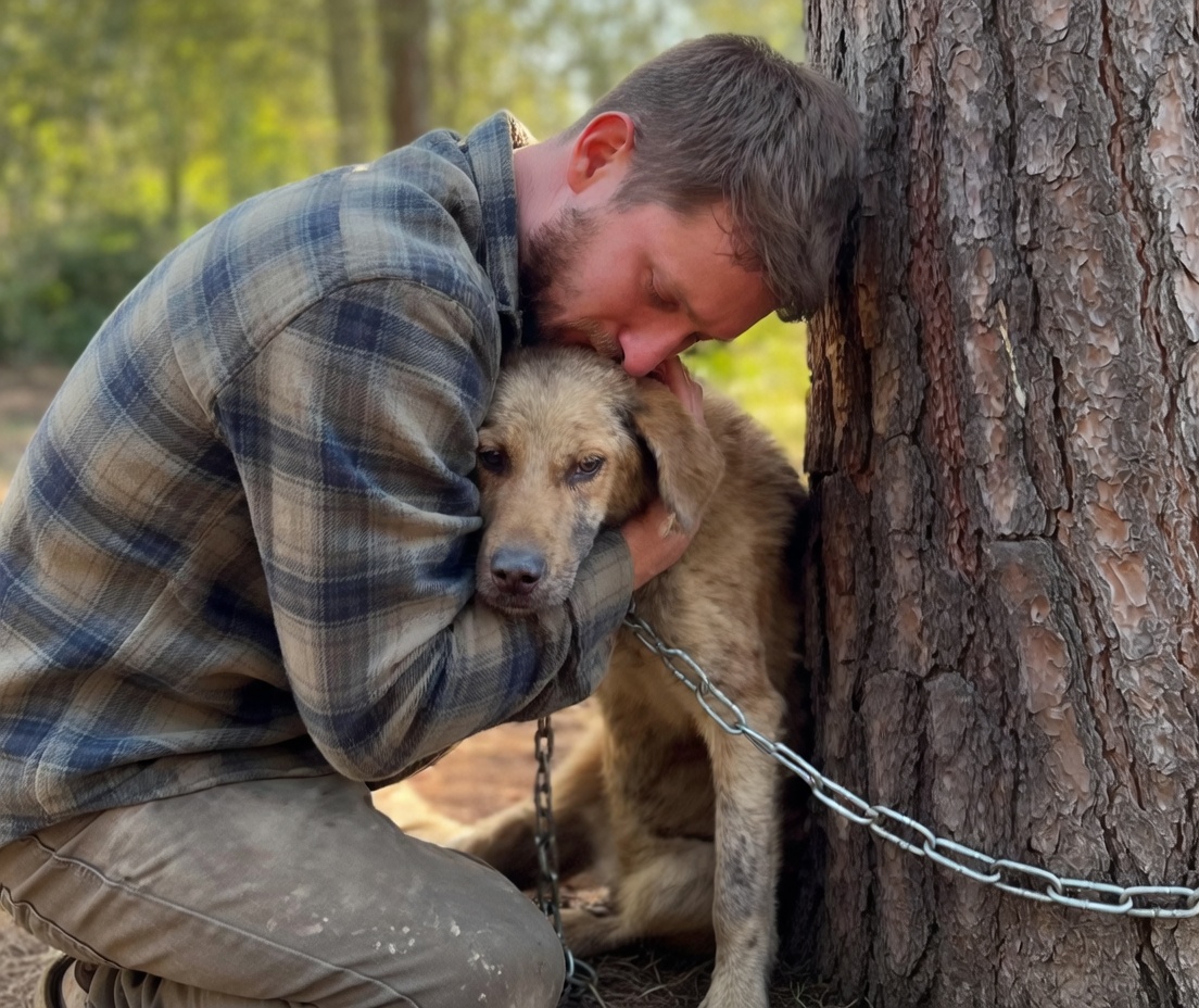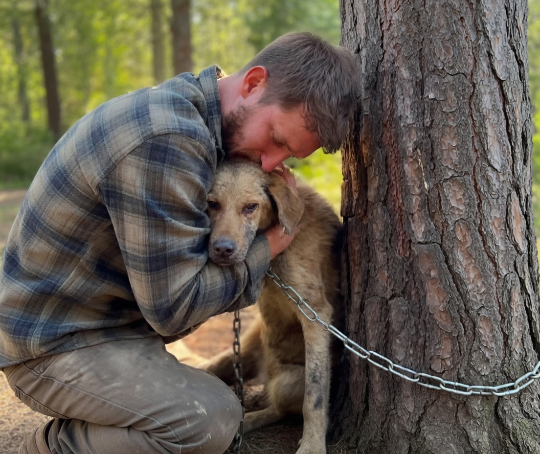 Bennett pushed his way through the dense forest, guided by a feeling he couldn’t ignore. That’s when he saw it—a dog tied tightly to a tree, its body frail, barely holding on. But what struck him the most was the cruel wire wrapped around its muzzle, forcing its mouth shut, silencing any cry for help.