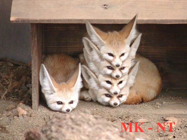 Inside their cozy shelter, a group of fennec foxes gathered closely together to rest.