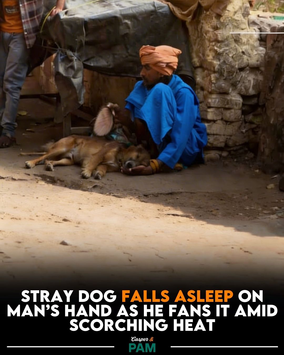 The man gently fanned the dog, carefully trying to cool it down from the intense heat. 🪭🥺