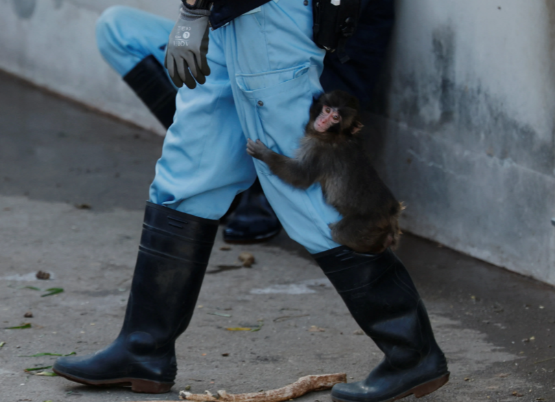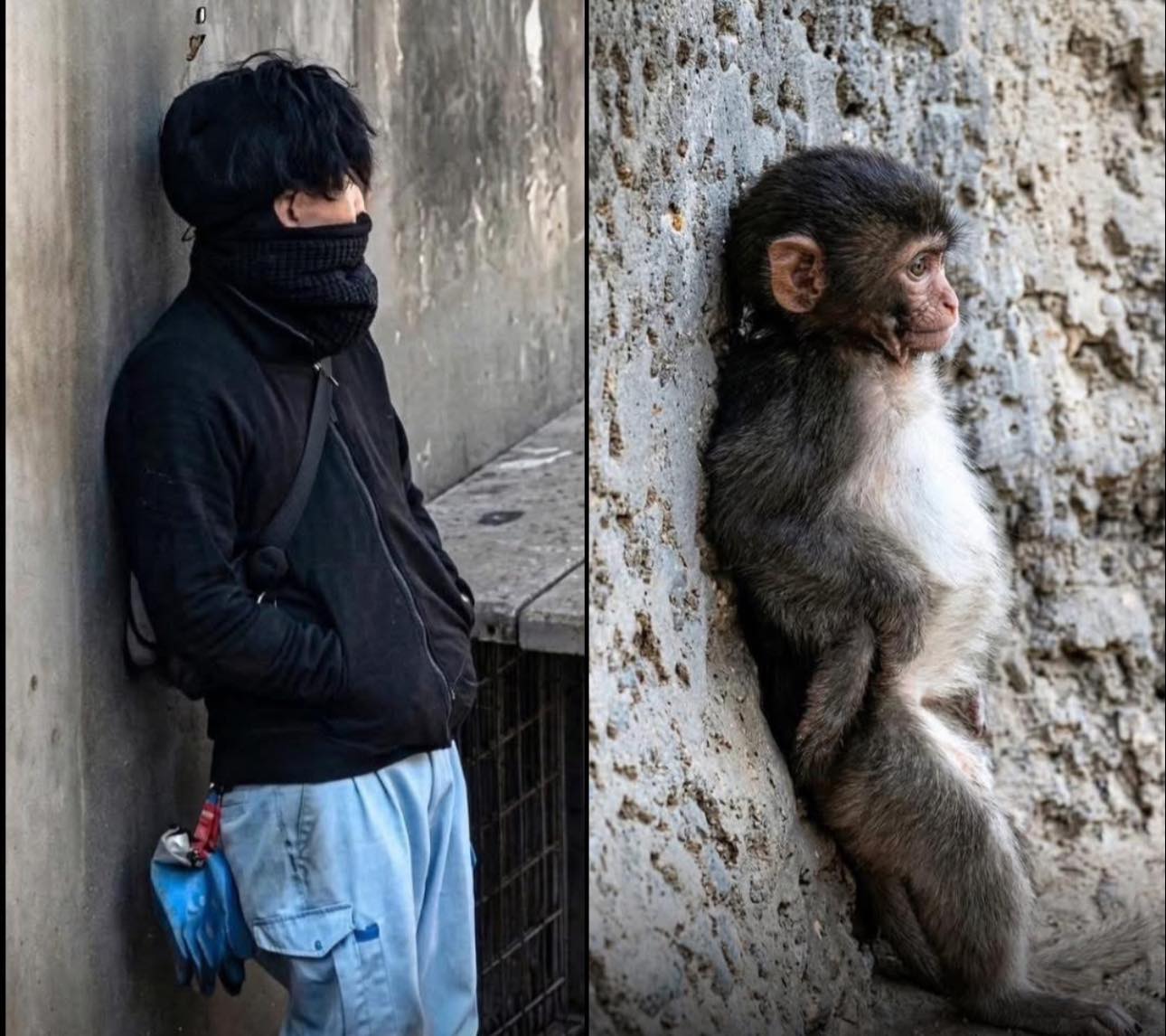 A perfect example of “monkey see, monkey do.” Punch-kun, the young macaque, was spotted leaning casually against a wall — almost in the exact same pose as the zookeeper who raised and protected him. The relaxed stance, the calm confidence, and the quiet way he rests against the surface make it appear as though he is mirroring the person he trusts most. 🐾✨