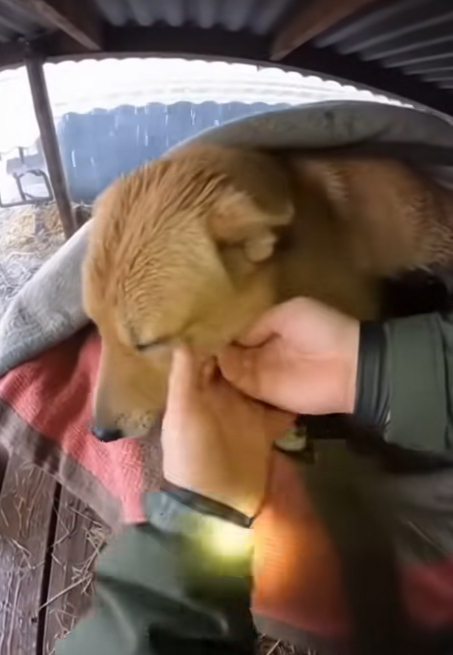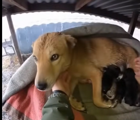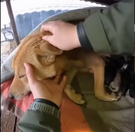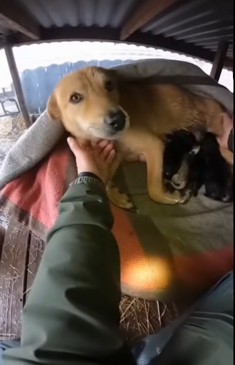 The rescuer knelt on the damp ground, exhausted but focused. In their arms, wrapped carefully in a thin emergency blanket, was the mother dog.