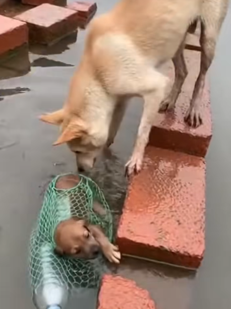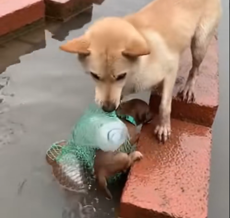 Tonight, she is safe, her pups beside her. But her story remains a reminder that heroism is sometimes found in the smallest paws and the fiercest hearts, rising even from the muddiest waters. 🐾❤️