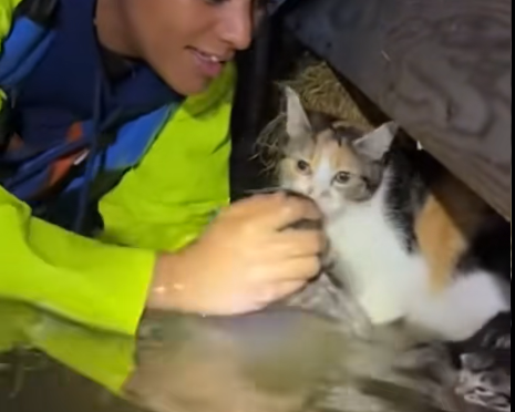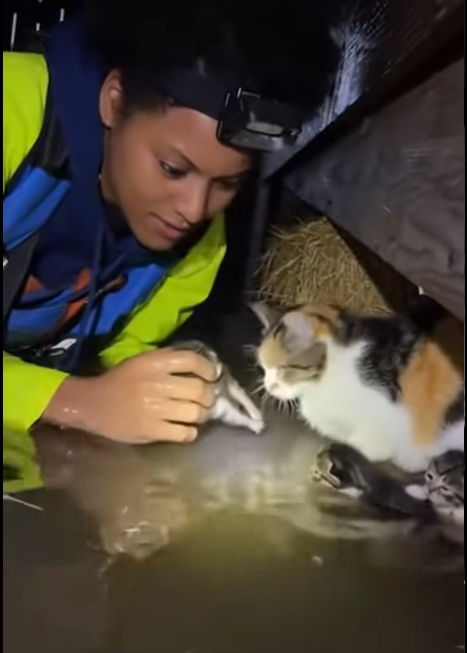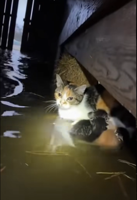 A mother cat moved with fierce determination, her tiny paws digging into unstable ground. Her eyes were fixed on her kitten, her every action guided by a single mission: protect her child at all costs.