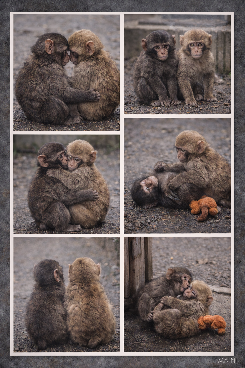 New footage shows Punch spending time with a fellow macaque named Moe, and the bond between them is quickly melting hearts all over again. The two appear inseparable—grooming each other, playing together, and sharing moments of closeness that fans have described as unbelievably sweet. Some viewers have even pointed to what looks like a tiny monkey “kiss,” turning Punch and Moe into one of the internet’s most adored animal duos.
