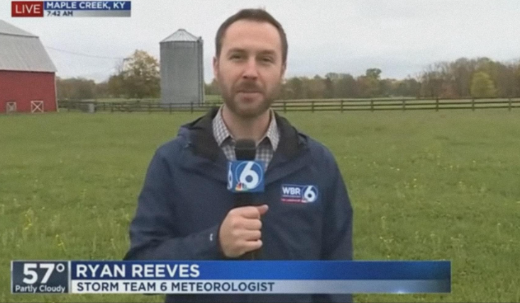 In a small town in Kentucky, a local weatherman thought he had finally seen the end of days-long rain. Standing outside on the soaked grass, he was wrapping up his live forecast, assuring viewers that the worst of the storm had passed. The wind had calmed, puddles reflected the gray sky, and the usual countryside serenity was returning. Everything seemed perfectly ordinary… until it wasn’t.