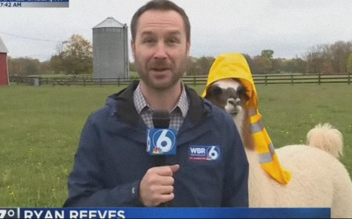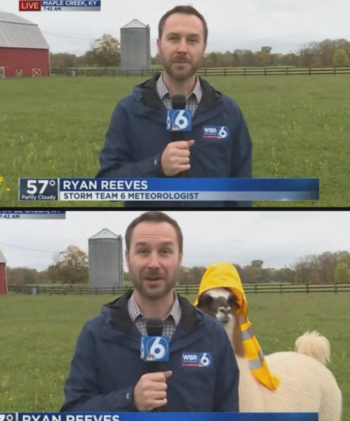 Kentucky Weather Report Interrupted by Raincoat-Wearing Llama! 🌧️🦙