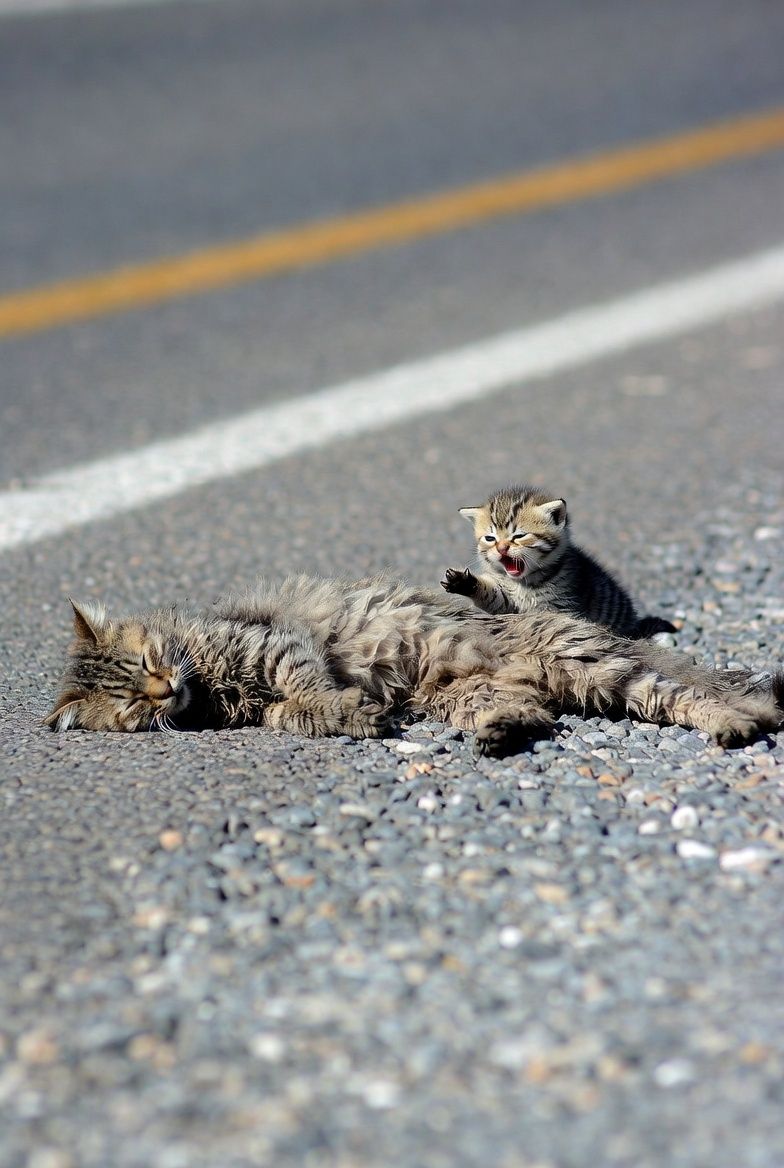 The kitten was too young to understand what had happened. It didn’t know why its mother wasn’t responding, and every instinct it had told it to stay close and keep calling. With eyes wide and voice trembling, it reached out again and again, pressing its soft body against the larger form that was once its safe world.
