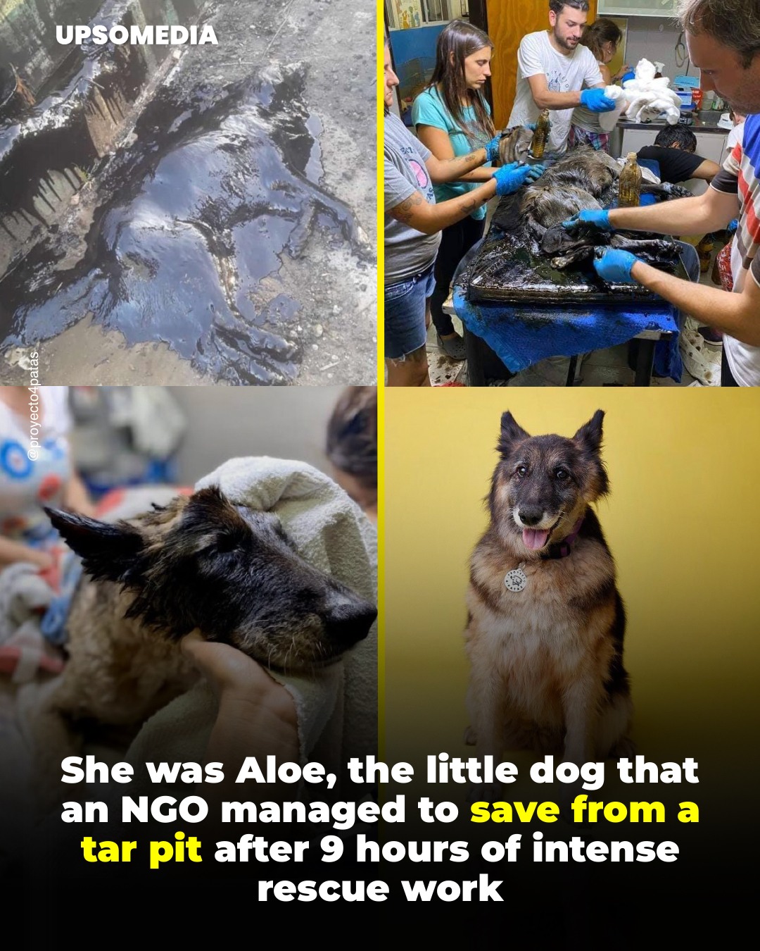But then, hope arrived in the form of kind humans ❤️🐾. The Argentine animal rights organization Proyecto 4 Patas stepped in and refused to give up on her. What followed was a long, agonizing 9-hour rescue ⏳💔, where volunteers carefully used liters of oil to dissolve the tar and free her fragile body.