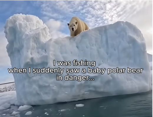 Out on the frozen expanse, I noticed a tiny polar bear cub struggling alone. Its cries cut through the cold air — frightened, desperate, and completely vulnerable. Not far away, standing on a sheet of ice, was its mother. She could see her cub, but the distance and danger between them kept her from reaching it.