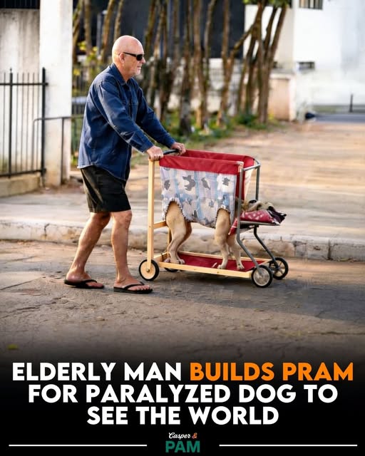 When his dog could no longer walk, most people might have accepted it as the end of their daily routine—but this elderly man saw it differently, refusing to let age or illness take away the simple joy they had always shared together 🌿 he carefully built a handmade pram, adjusting every detail so his loyal companion could sit comfortably, safe and supported, ready to explore the world again