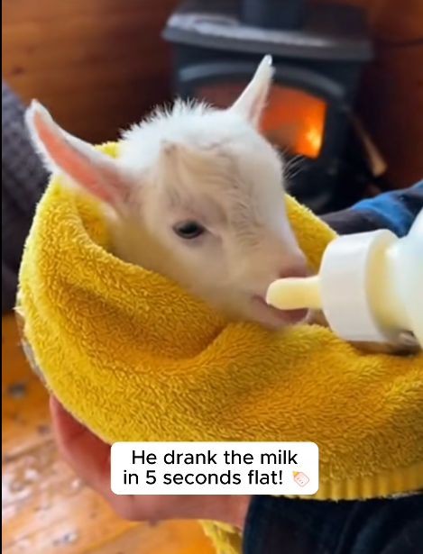 Gently, it was lifted from the snow, its fragile body barely resisting. Wrapped in warmth and brought to safety, the goat finally had a chance. Slowly, the shaking began to ease. Its breathing steadied, and the fear in its eyes softened.