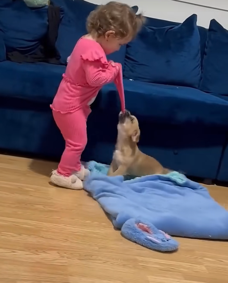 There’s a special kind of magic that happens the moment kids and dogs come together — and it almost always begins the same way.