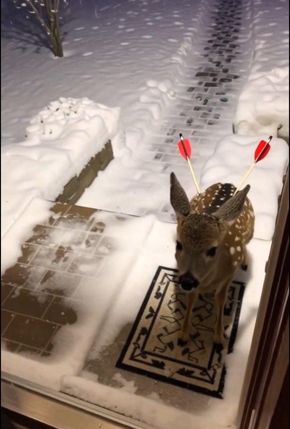 Inside, a man noticed the fragile figure outside. The moment he saw the deer, he didn’t hesitate 🥺