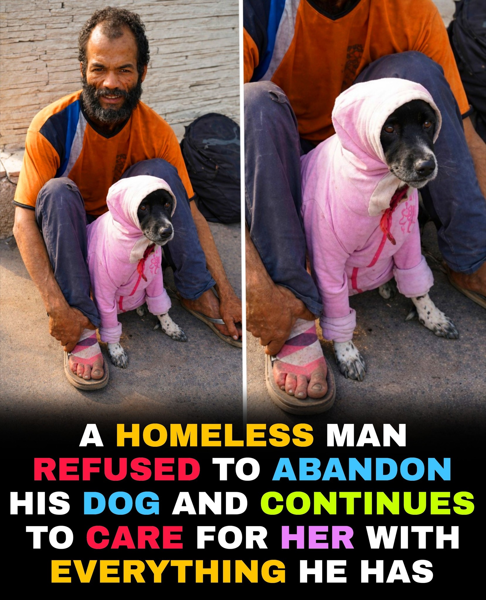 On the streets, where life is uncertain and every day is a struggle 🌧️🌫️, a homeless man walks side by side with his dog 🐶🤍