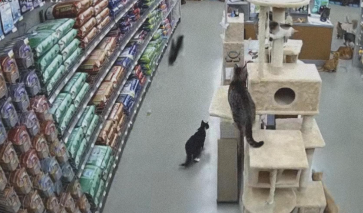 A nearby animal shelter had a minor mishap: an unattended door latch left a group of cats free to wander. Curiosity and instinct took over, and the cats slipped straight into the new pet shop next door.