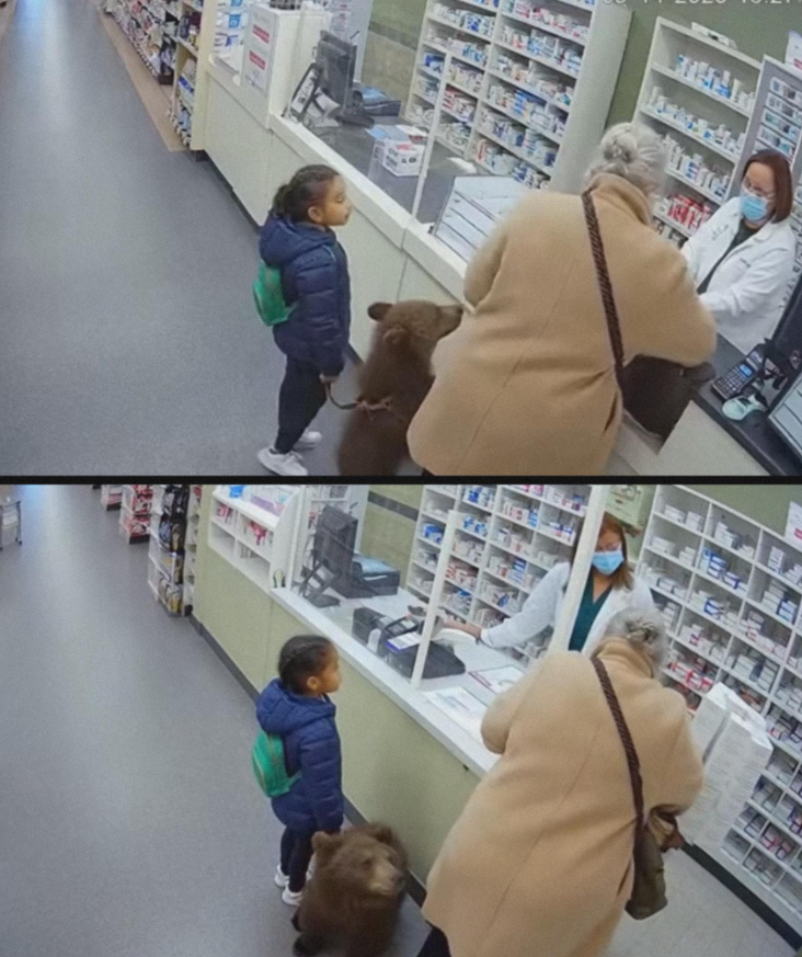 A few hours later, the parents’ phones started blowing up. A clip from a local pharmacy’s CCTV was spreading like wildfire: the babysitter had walked into the store — with a bear cub calmly padding along beside her. The cub appeared calm and obedient, almost like it belonged there, while employees wisely kept their distance and called authorities immediately.