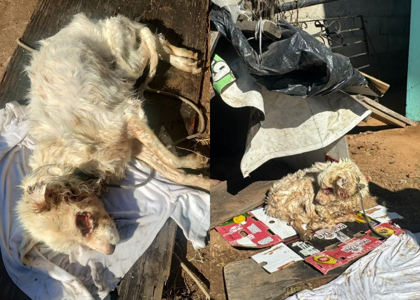 The team immediately organized a rescue and rushed the dog to a veterinary clinic. As they learned more about her situation, authorities were also contacted due to signs of serious neglect.