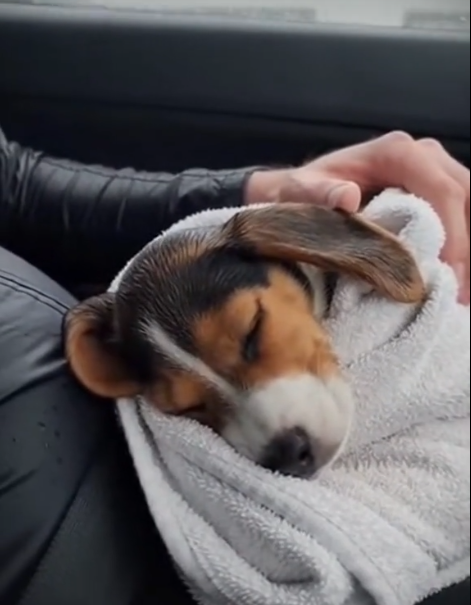 Wrapped in warmth, away from the rain, his trembling slowly began to ease. The fear didn’t disappear instantly—but something new took its place. Relief. Because sometimes, all it takes is one person to step in… and change everything for a life that had no way to escape. 🐾❤️