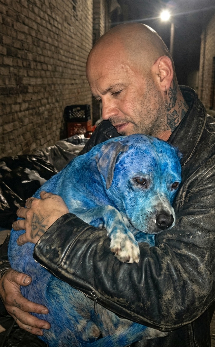 At first, it didn’t even look alive—just a bright blue shape behind a dumpster, something you’d mistake for trash or a discarded object… until it trembled, just slightly, revealing a life trapped inside something that should have never covered him frozen in place, unable to move, silently waiting in the cold