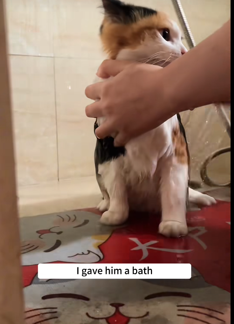 I took him home. The first thing I did was clean him. It took time to gently wash away the layers of dirt, revealing the beautiful kitten underneath. His fur, once dull and tangled, began to show its true color. It was like watching him come back to life. Then came food, warmth, and rest. At first, he was cautious, eating slowly and watching everything around him. But as the days passed, he began to trust. His movements became more confident, his eyes brighter, his body stronger.