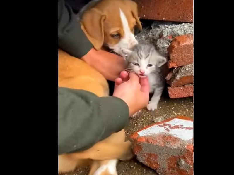 I rushed toward them, struggling against the wind and rain. The closer I got, the more heartbreaking the scene became. The kitten clung tightly to the ground, barely able to keep its balance, while the puppy stayed close, as if trying to protect its tiny companion.